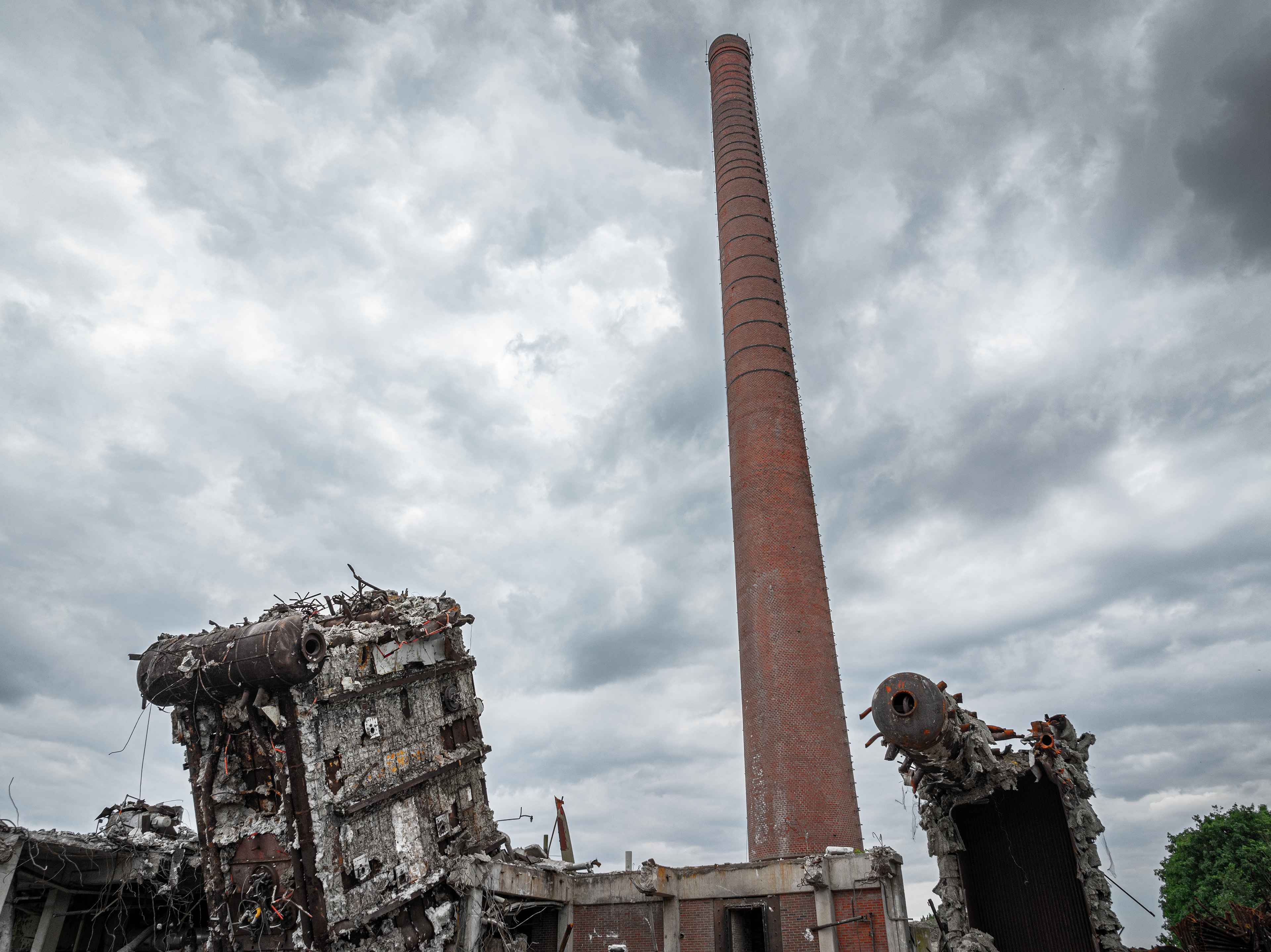 Uiteindelijk zal alleen de schoorsteen een blijvende herinnering zijn aan de gloriedagen van deze mooie fabriek....