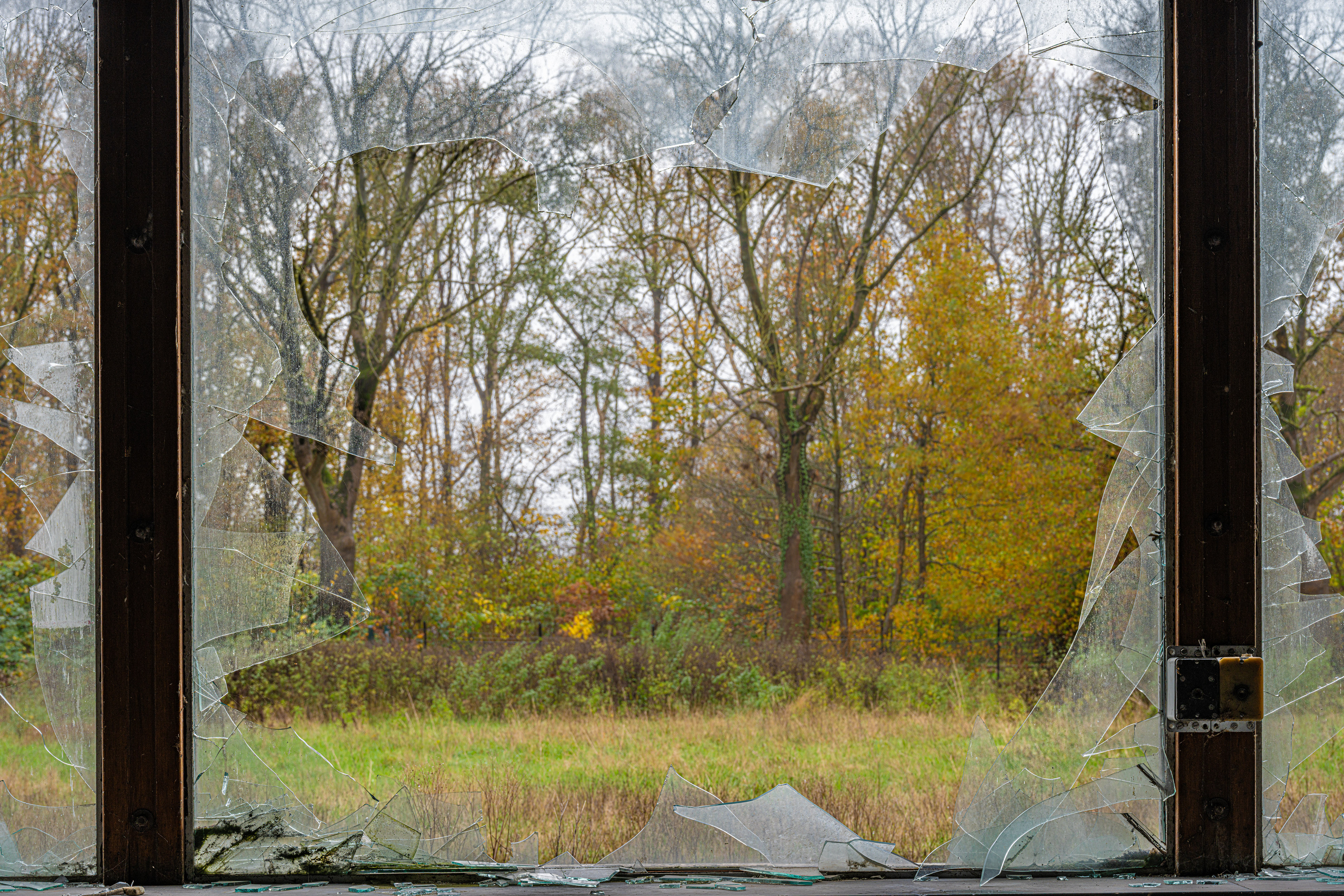 Buiten is het herfst, en binnen doet elke stap het glas steeds kraken.
